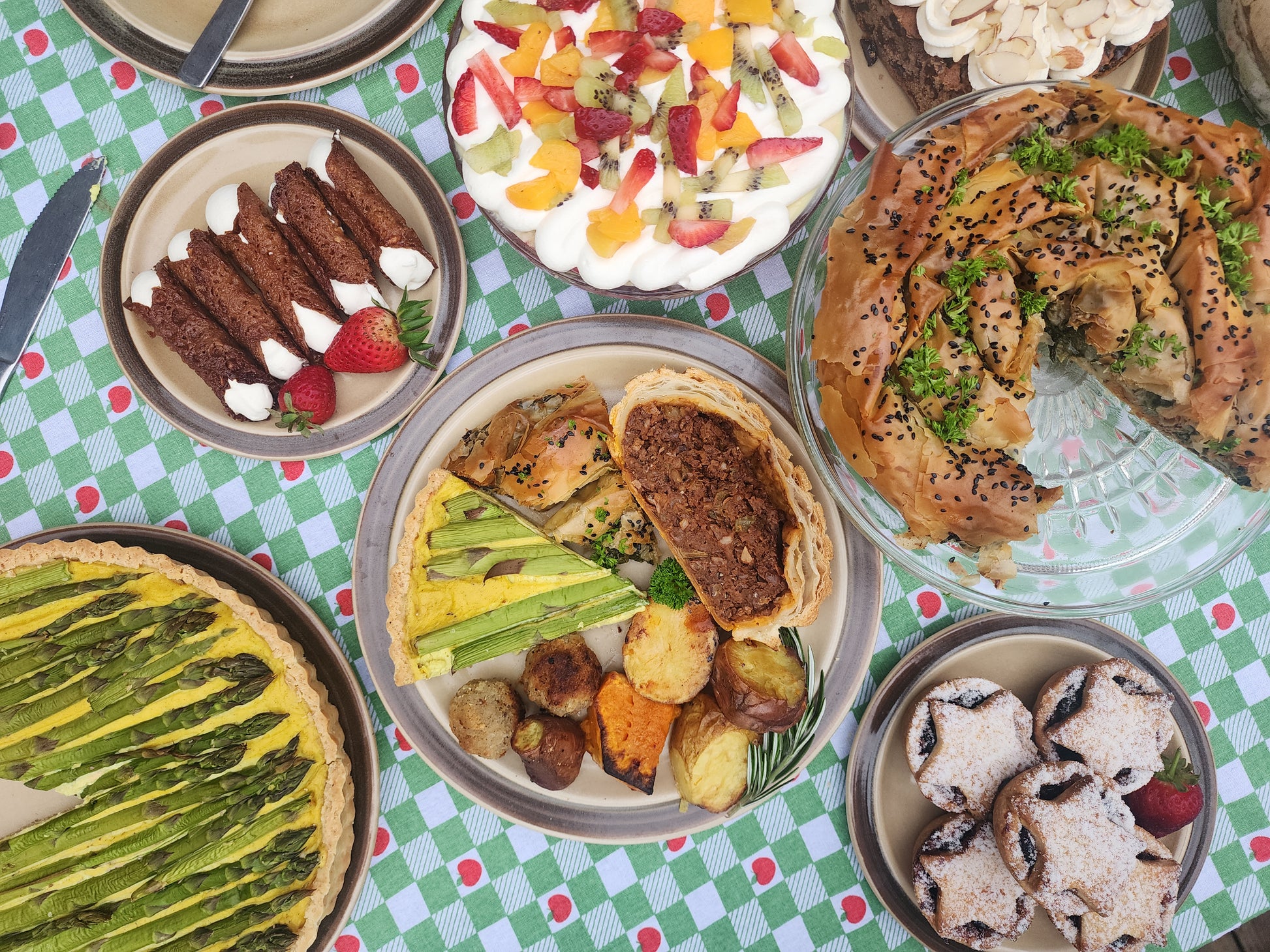 Buttery vanilla shortbread pastry, filled with orange and brandy soaked fruit, candied peel and almonds.